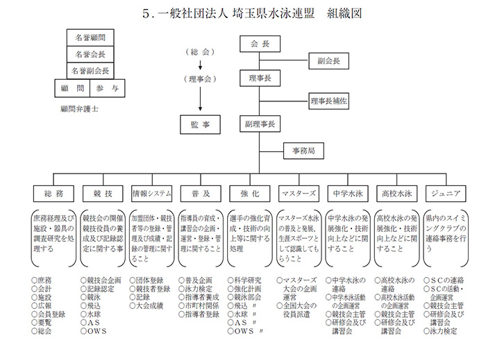 一般社団法人 埼玉県水泳連盟 組織図