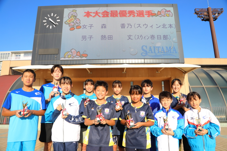 | 2025年8月31日(日)・9月7日(日)、川口青木町公園で行われた『第50回埼玉県SC屋外AG水泳競技大会』において、優秀選手として選ばれた選手の皆さんです。 |