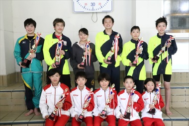 | 平成29年4月23日(日)、アテナアクアメイツで行われた『 南部ブロッククラブ対抗水泳競技大会 』において入賞したスクールと優秀選手として選ばれた選手の皆さんです。 |
